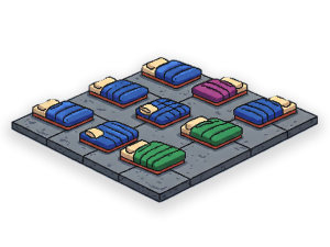 I sovsalen övernattar du i så kallad golvförläggning. Du tar själv med liggunderlag, luftmadrass eller liknande, samt kudde, täcke eller sovsäck.