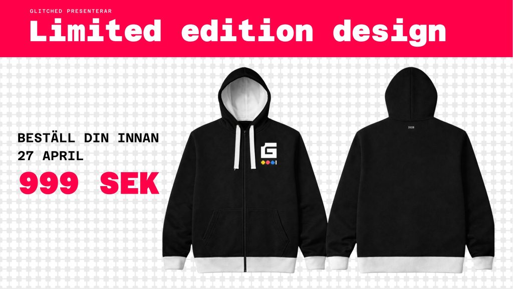 Din hoodie levereras på plats under Glitched 2026 och kan inte skickas med post. Se till att säkra din innan deadline.